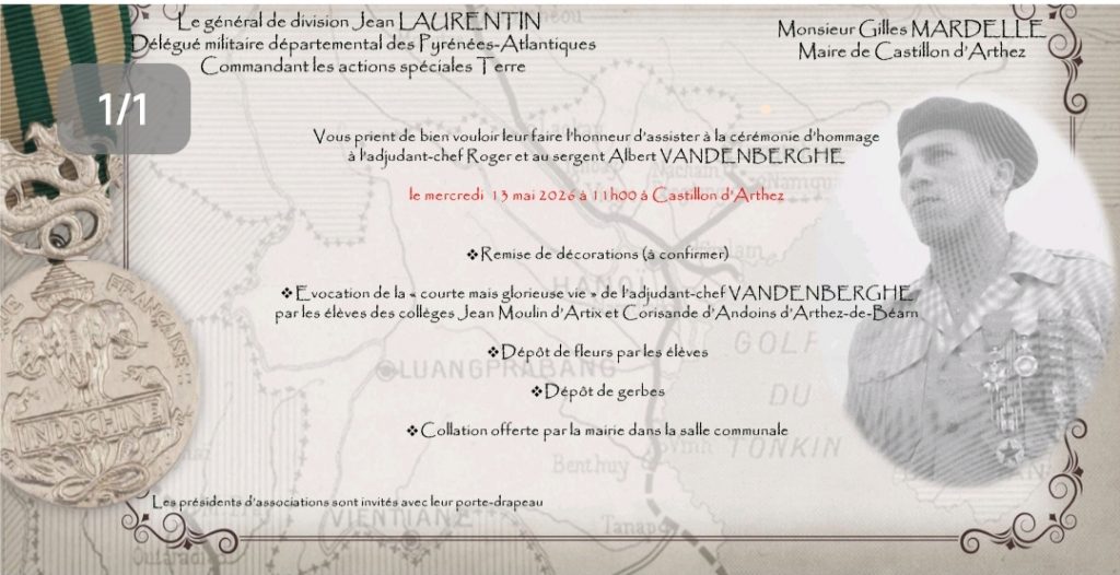 Mercredi 13 mai : cérémonie d’hommage à l’Adc Roger et au sergent Albert VANDENBERGHE à Castillon d’Arthez (64379).