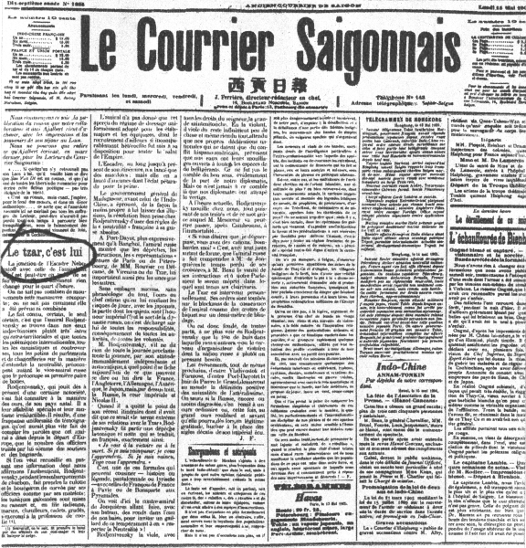 Deux ensembles de dates et deux catégories de faits, que relient entre eux des parentés de personnes ou de lieux. En août-septembre 1904, l'arrivée à Saïgon du croiseur russe